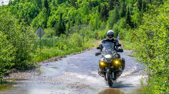 By our third day everything started to settle down. The morning started with about 2 hours of nice and predictable (for a change) gravel to about an hour run of pavement down rt. 117 to Mont Laurier for lunch. The afternoon consisted of backtracking on much of Day 1’s route, which, by this point felt like a cake walk. A little coaching from Bob (another former mountain bike racer) and Erik also helped my technique, comfort and overall speed. In short, I had to relearn my mountain bike racing skills…intuitive on a bicycle but intimidating on a 570 lb. beast. Digging these skills back out of the closet was huge.