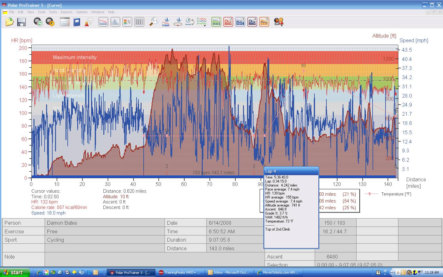 I realized how amazing beneficial it is to drink plain water at the end and pour some of it on the back of your head and neck. It cooled me right down and let me cruise in the last 20 miles feeling like new (well, not totally new). Why haven¹t I ever done this before. It was amazing. My low point was mile 90-105. Starting to overheat.